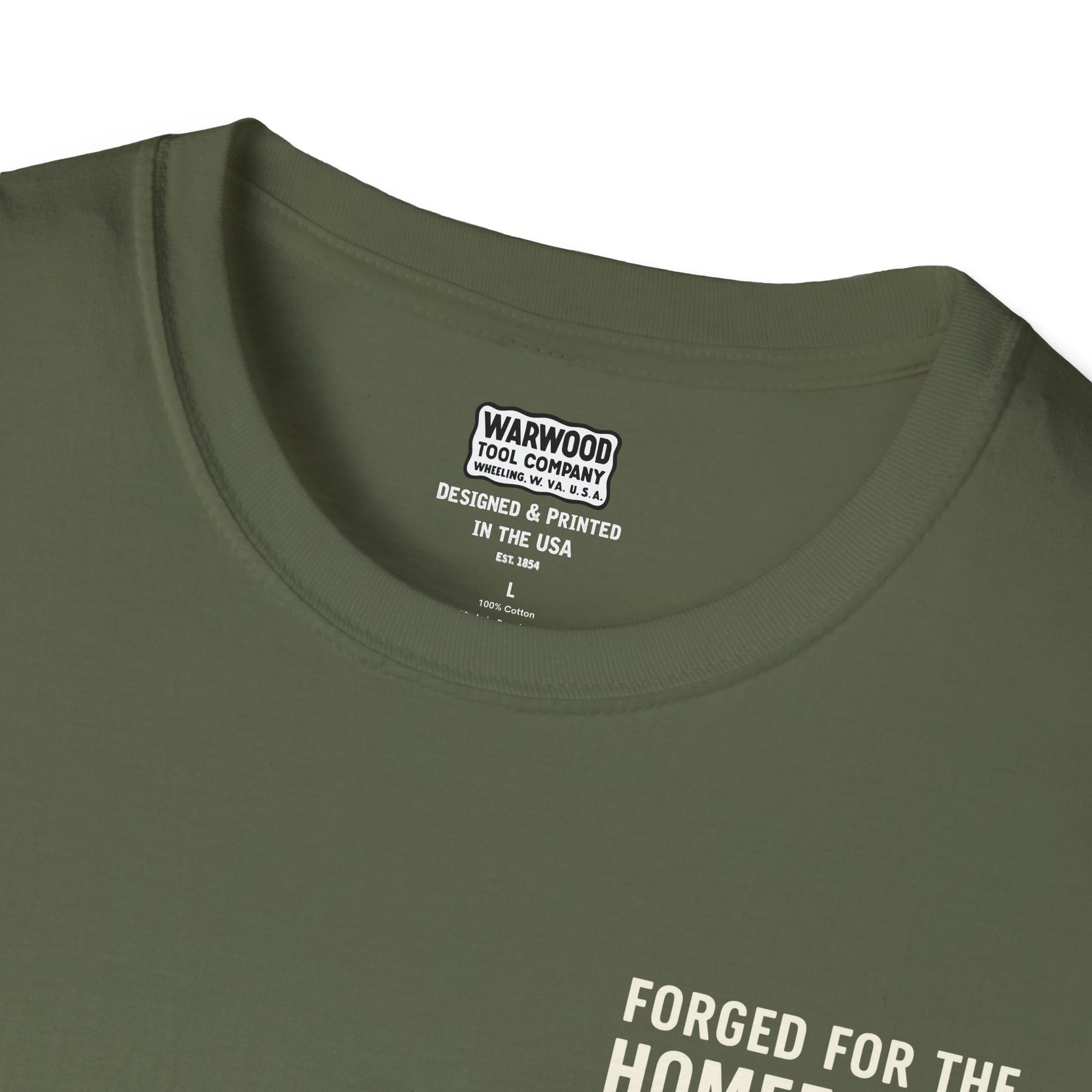 Show your pride for American-quality craftsmanship with the Forged for the Homefront Tee — designed and printed right here in the USA. This lightweight crewneck is built for everyday wear with a soft, breathable feel that holds its shape over time. Featuring the “Forged for the Homefront” design on the chest and a Warwood Tool Co. mark on the back, it’s a tribute to those who build, repair, and forge the backbone of this country.